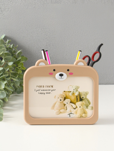 * Комбинированный дизайн: фоторамка на подставке совмещена с удобным органайзером для ручек и карандашей.