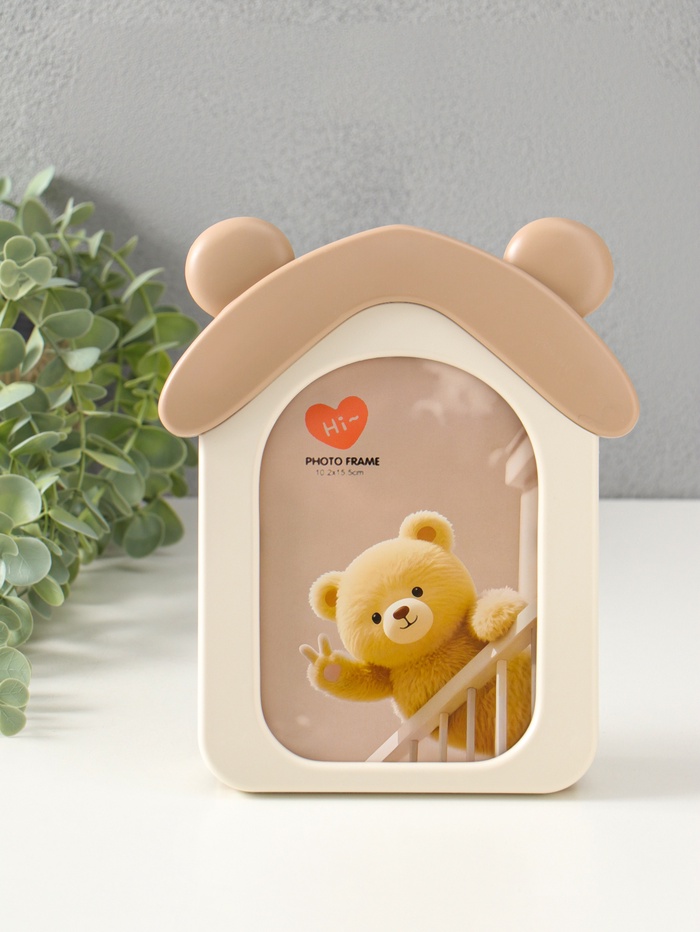Фоторамка для фото 10×15 см с карандашницей «Домик с ушками мишки», пластик, бело-бежевый, 4.8×16.7×20 см