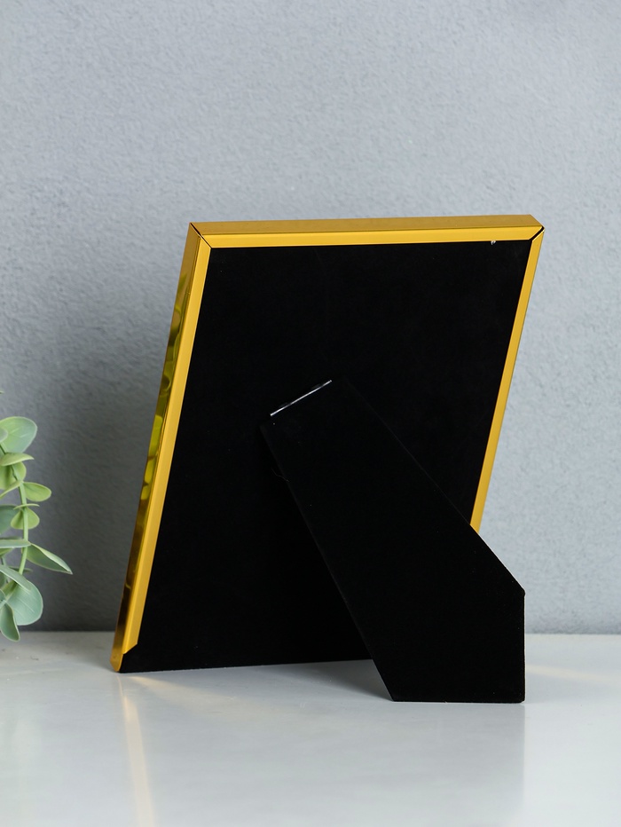 Эта золотистая фоторамка — элегантный способ сохранить самый важный кадр. Её классический дизайн и благородное покрытие создают ощущение ценности момента, превращая простое фото в драгоценную деталь интерьера.