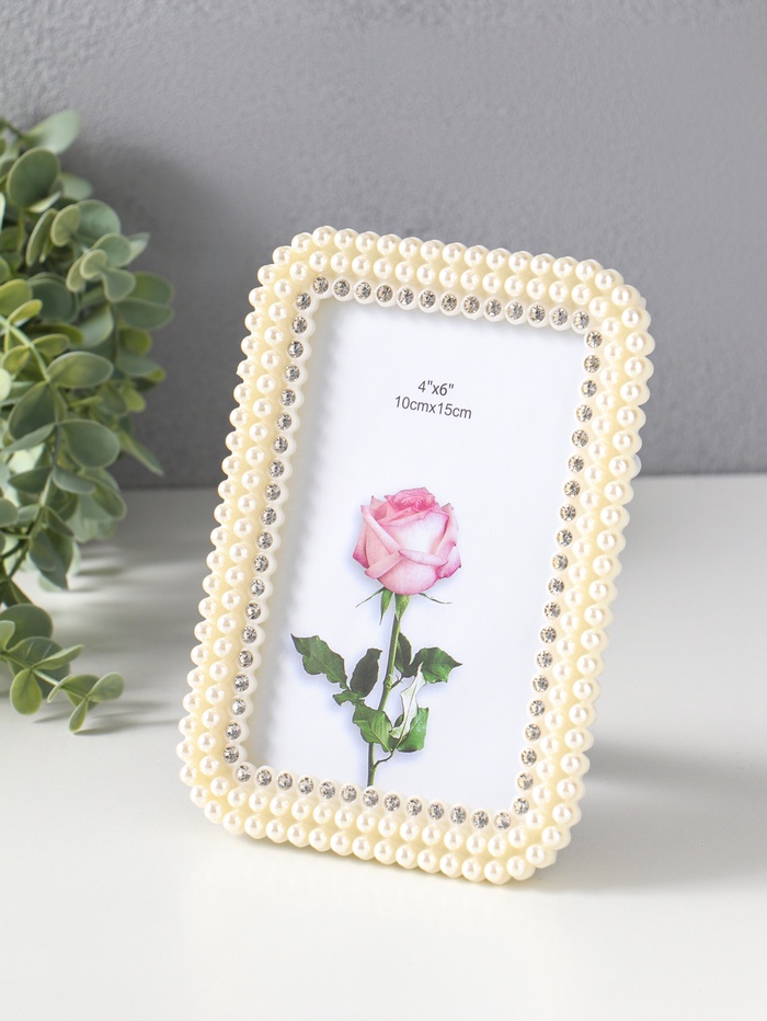 Фоторамка для фото 10×15 см «Жемчуг и стразы», пластик, закруглённые углы, 18×13 см
