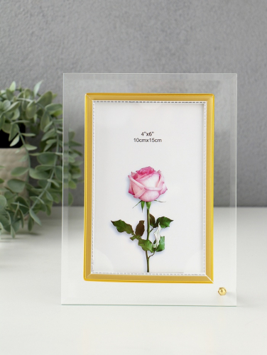 Фоторамка для фото 10×15 см «Золотой кант», стекло, вертикальная, прозрачная, 15.5×20.5 см