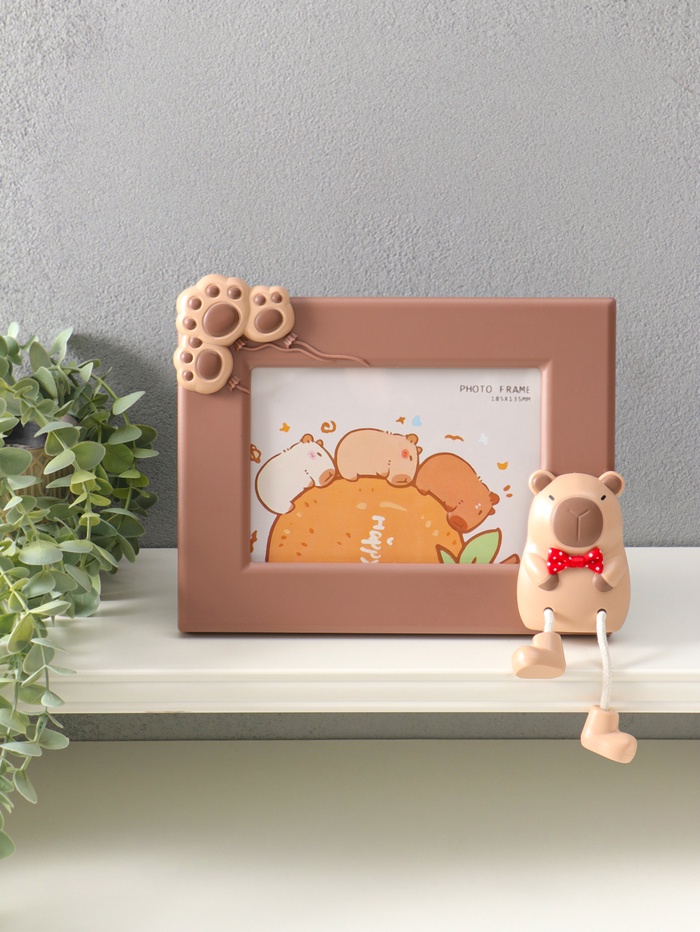 Рамка для фото с животным — отличный подарок на рождение ребёнка. Милая капибара, символ доброты и спокойствия, станет прекрасным талисманом для первой фотографии малыша. Такой практичный и стильный презент оценят родители, ведь он помогает превратить памятный снимок в элемент уюта в доме.