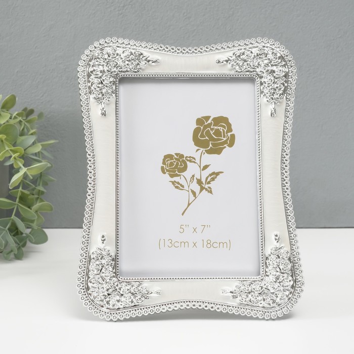 Фоторамка для фото 13×18 см «Розовый сад», пластик под металл, серебро и перламутр, 22×16.7×1.5 см
