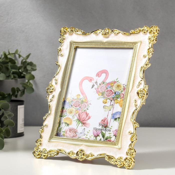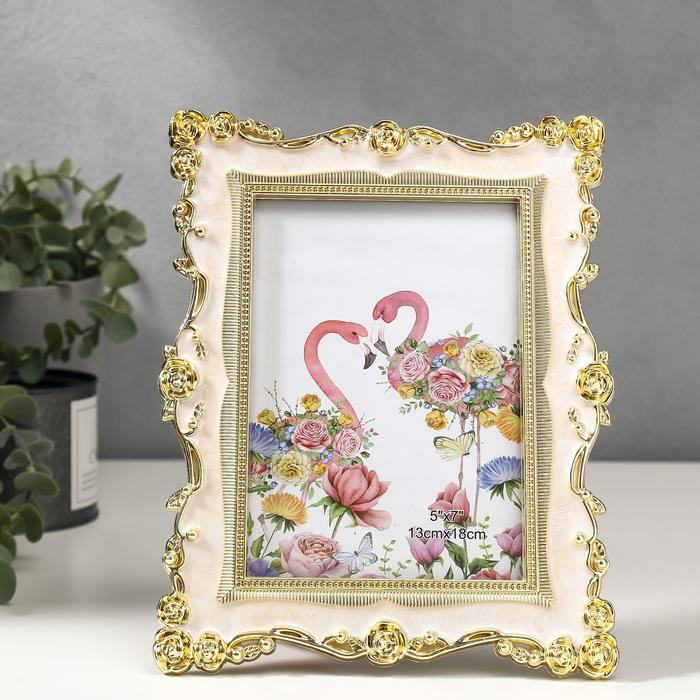 Фоторамка для фото 13×18 см «Розы и эмаль», пластик под металл, молочный, 24×18.5 см