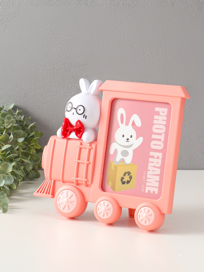 Фоторамка для фото 13×18 см «Зайка в поезде», пластик, розовый, 3×27.5×24.8 см