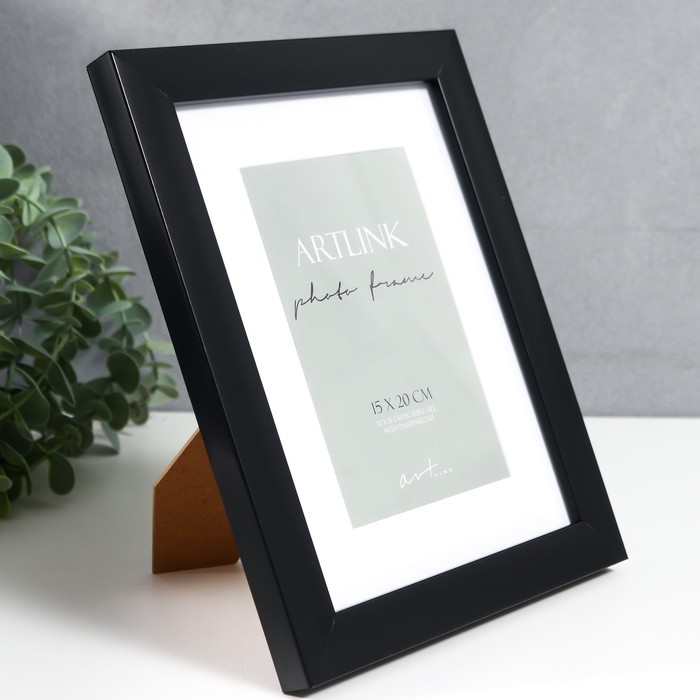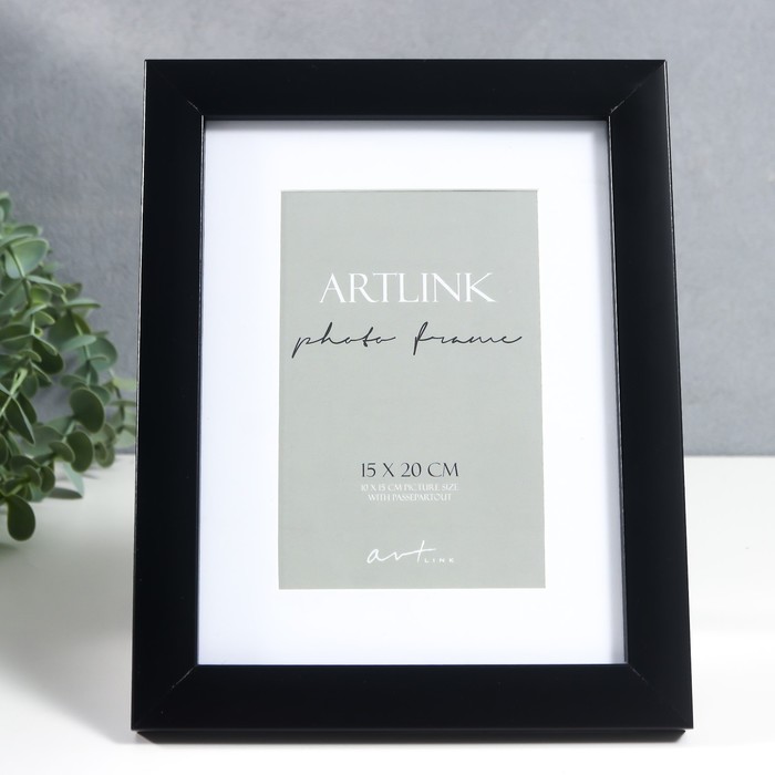 Фоторамка для фото 15×20 см Gloria, пластик, с паспарту 10×15 см, чёрный