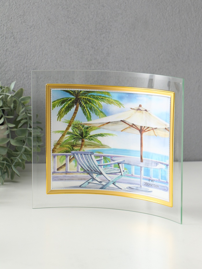 Фоторамка для фото 15×20 см «Золотой кант», стекло, горизонтальная, закруглённая, прозрачная, 23.5×20.5 см