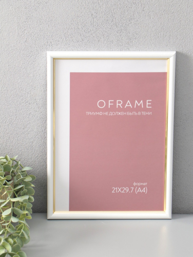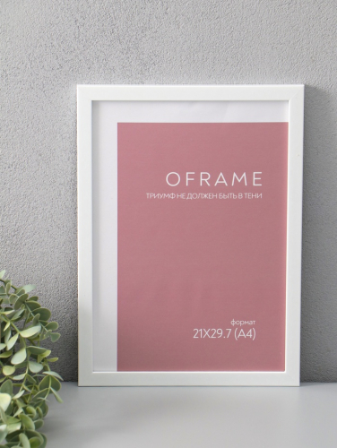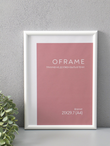 Фоторамка для фото 21×29.7 см (А4) Oframe, пластик, белый, (пластиковый экран)