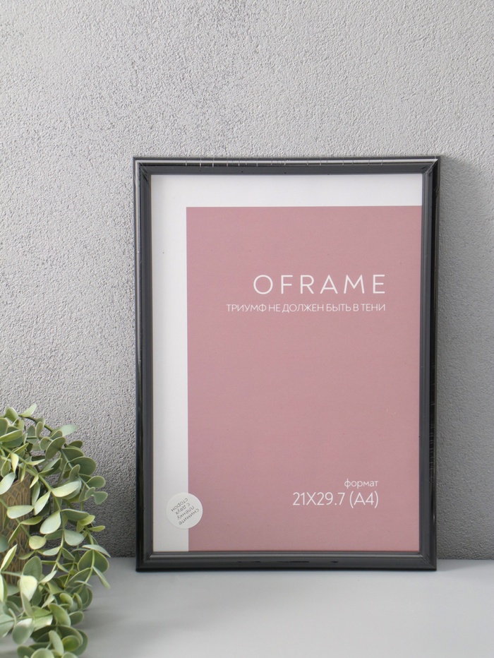 Фоторамка для фото 21×29.7 см (А4) Oframe, пластик, чёрный, (пластиковый экран)