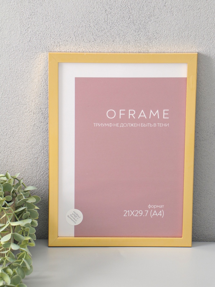 Фоторамка для фото 21×29.7 см (А4) Oframe, пластик, золото, (пластиковый экран)