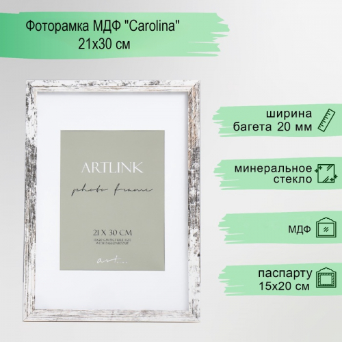 Фоторамка для фото 21×30 см Buffalo, сосна, (пластиковый экран), белый