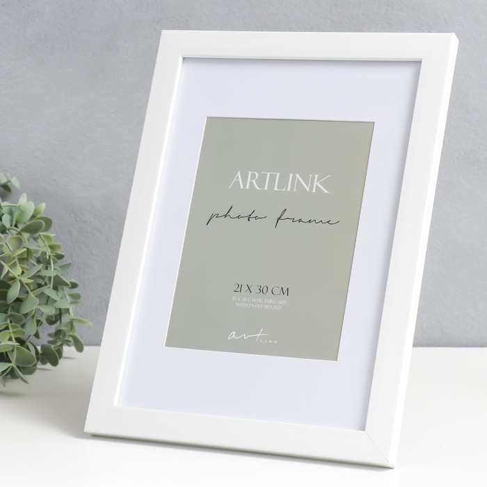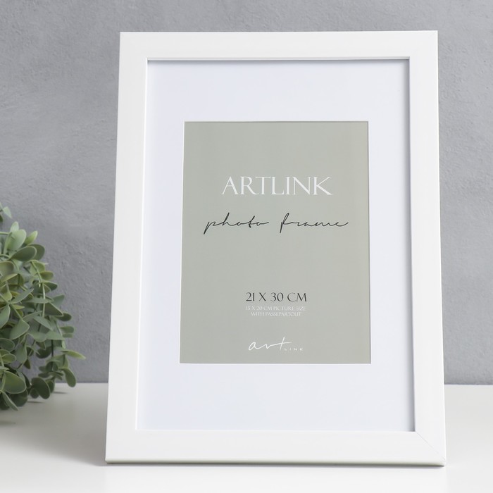 Фоторамка для фото 21×30 см, с паспарту (15×20 см), пластик, Gloria, белый