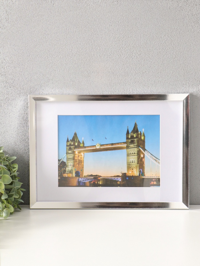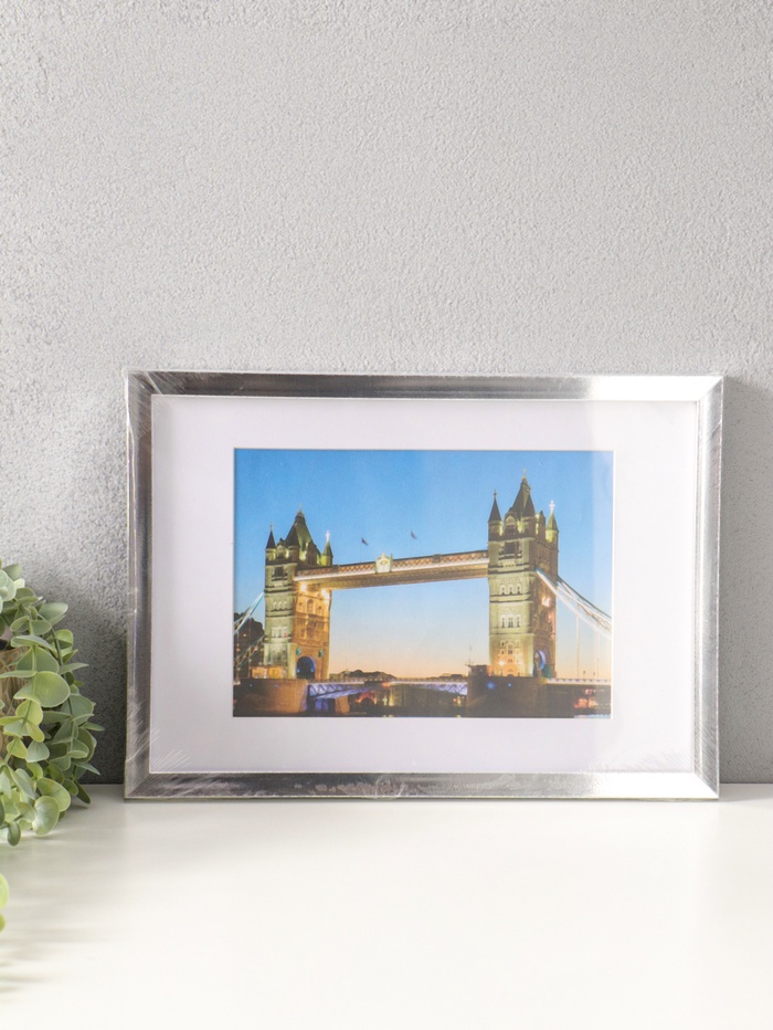 Эта серебристая фоторамка с паспарту — способ превратить вашу лучшую фотографию в готовое к размещению произведение. Она создана для стандартного отпечатка 21×30 см, но благодаря классическому белому паспарту формата А5 (15×21 см) вы можете эффектно выделить снимок любого размера, вплоть до стандартной фотокарточки.