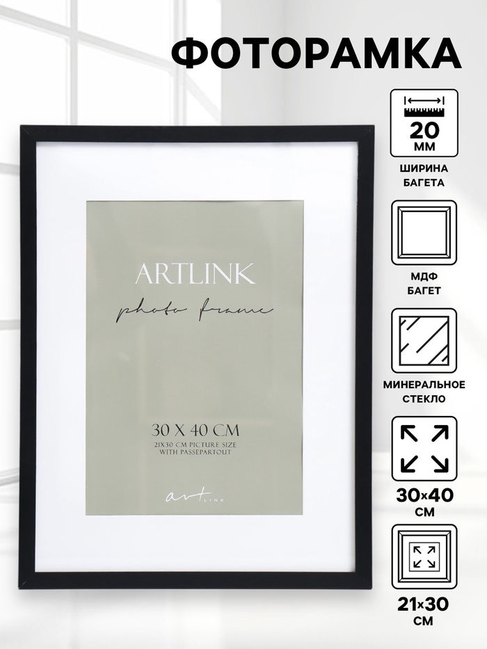 Фоторамка для фото 30×40 см Ellis, МДФ, с паспарту, чёрный