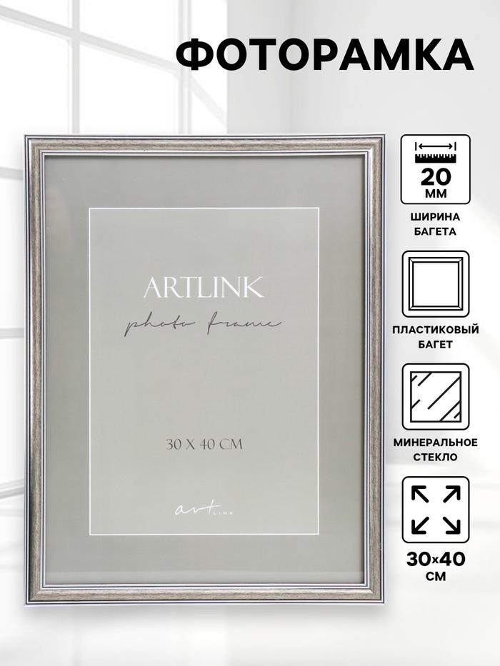 Фоторамка для фото 30×40 см Kira, пластик под серебро
