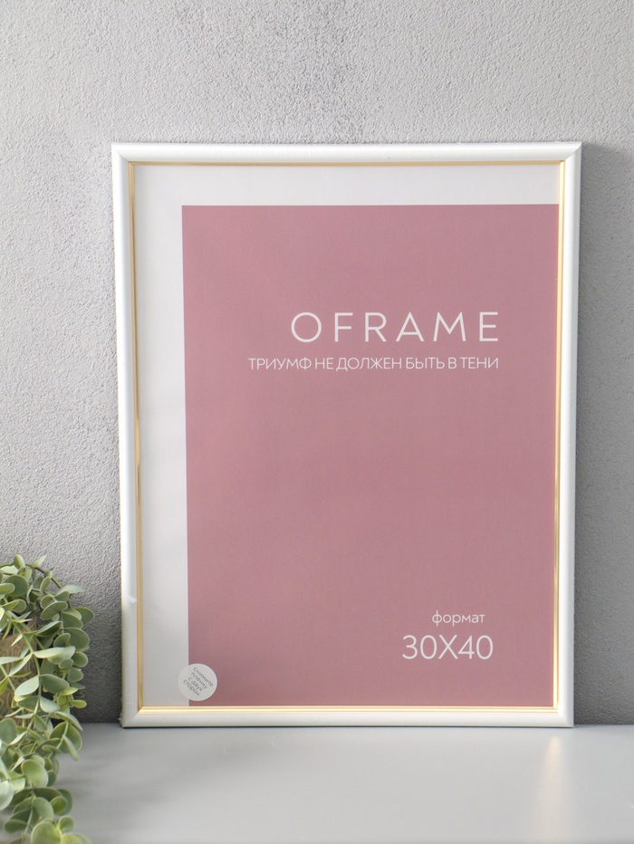 Фоторамка для фото 30×40 см Oframe, пластик, белый с золотом, (пластиковый экран)