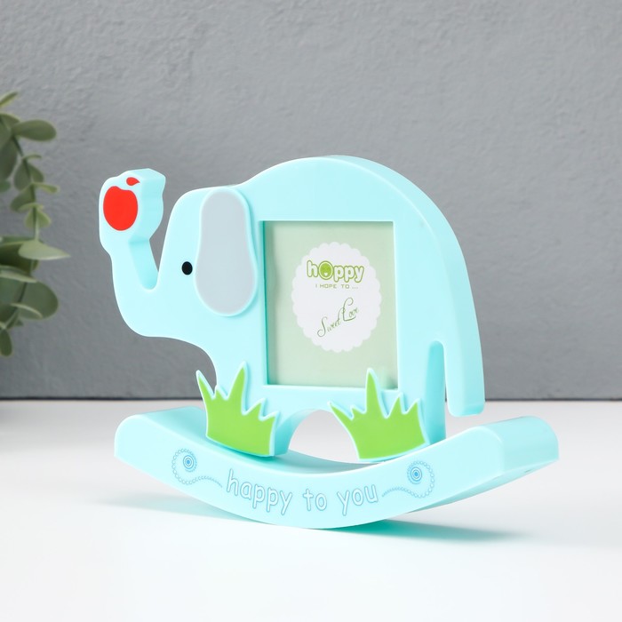 Фоторамка для фото 6×6 см «Слоник с яблочком», пластик, голубой, 18×3.9×16.3 см