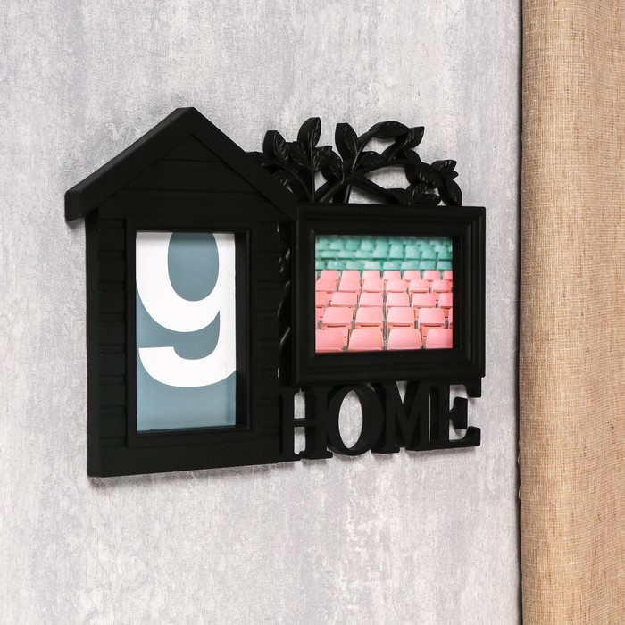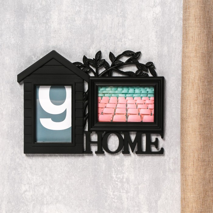 Фоторамка - коллаж на 2 фото 10×15 см «Дом и дерево», пластик, чёрная, 26.5×34 см