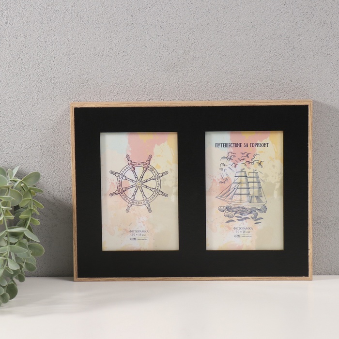 Фоторамка - коллаж на 2 фото 10×15 см с чёрным паспарту «Энрика», МДФ, 3×28×21 см