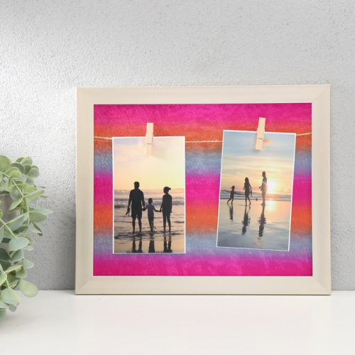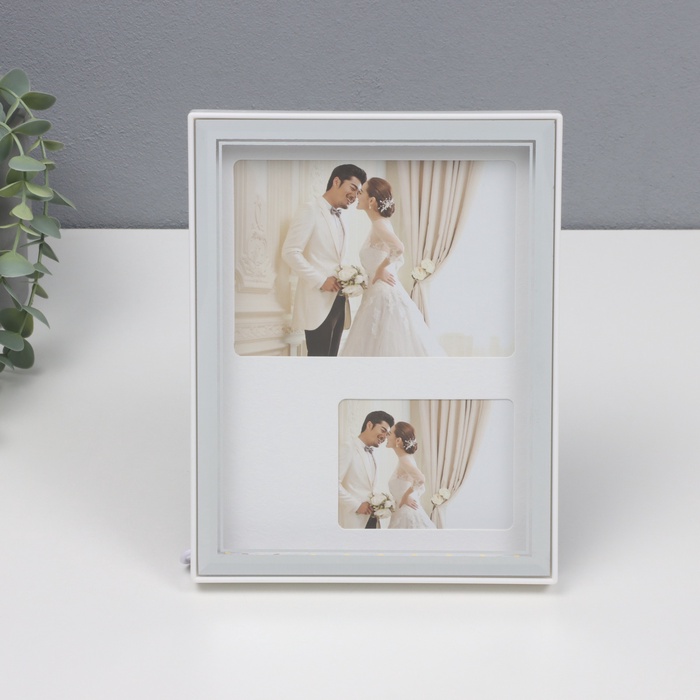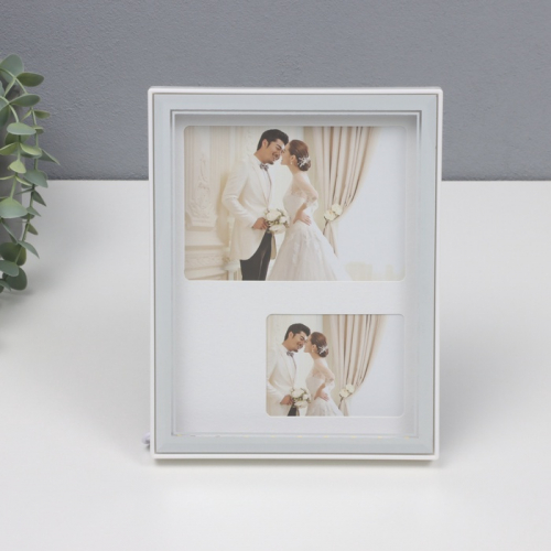 Фоторамка - коллаж на 2 фото 6×8.5 и 9×13 см «Яркие моменты», свет от USB, серебро 18×2×23 см