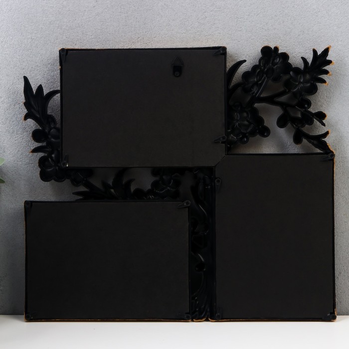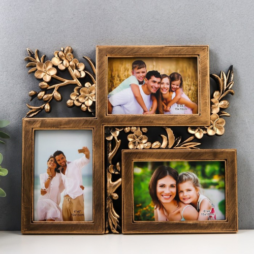 Фоторамка - коллаж на 3 фото 10×15 см «Цветущая вишня», золото, 33×29 см
