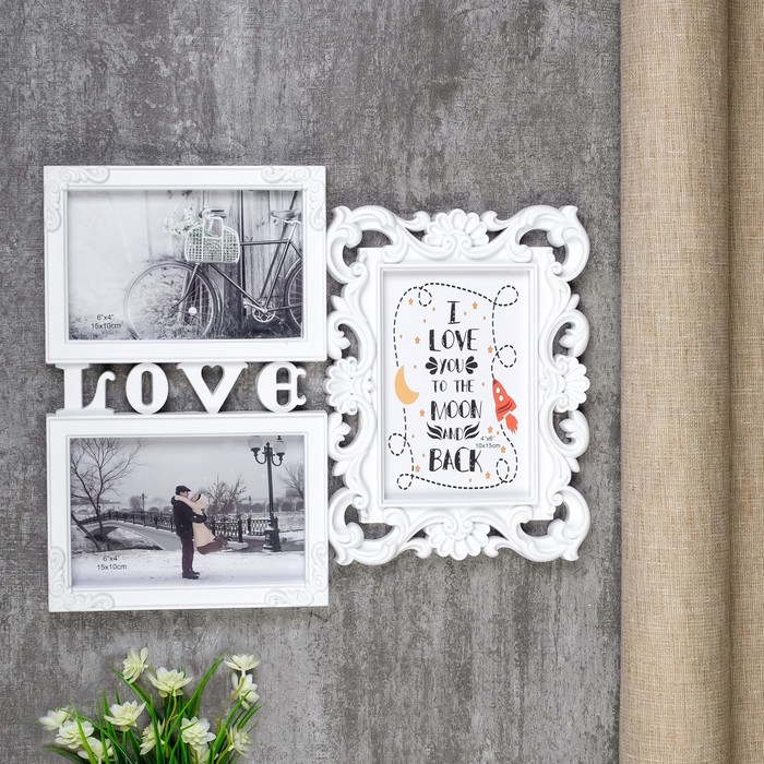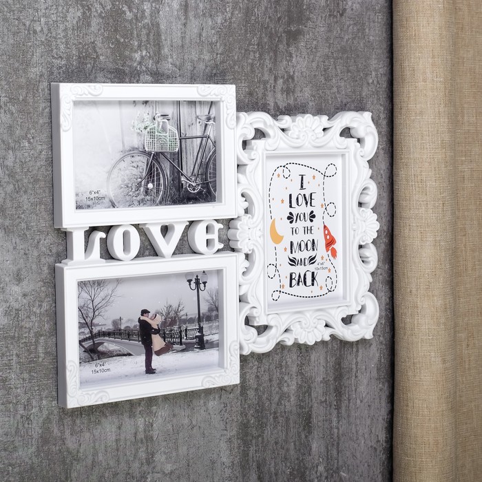 Фоторамка - коллаж на 3 фото 10×15 см «Любовь моя», белая, пластик, 26.5×32.5 см