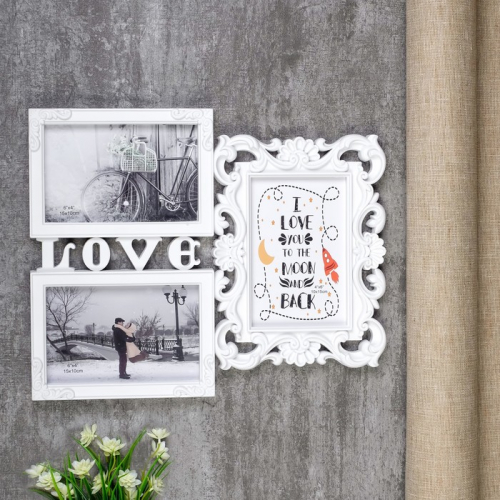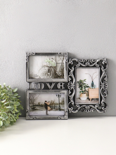 Фоторамка - коллаж на 3 фото 10×15 см «Любовь моя», пластик под т. серебро, 26.5×32.5 см