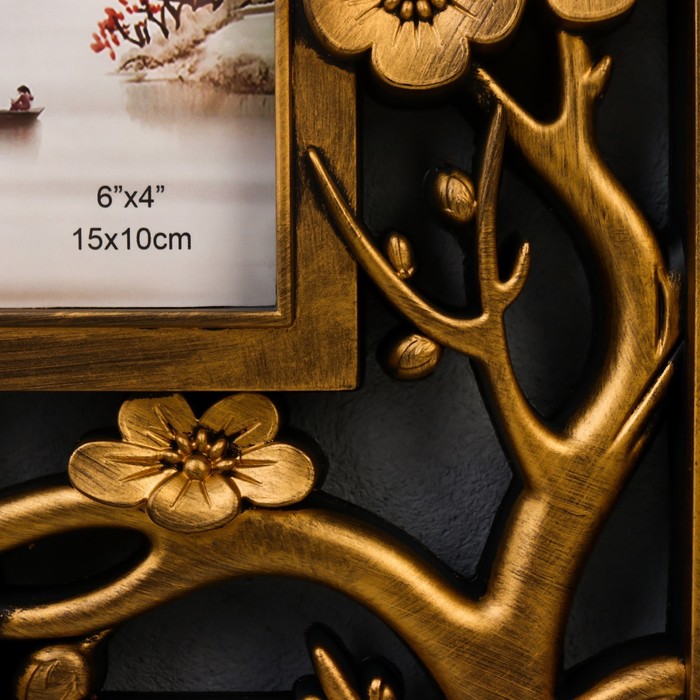 Фоторамка - коллаж на 3 фото 10×15 см «Вишнёвый сад», т. золото, 32×27 см