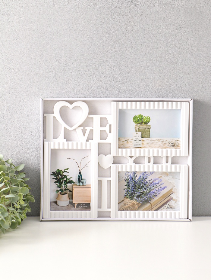 Фоторамка - коллаж на 3 фото 10×15 см «Я люблю тебя», пластик, белая, 31.5×25.5 см