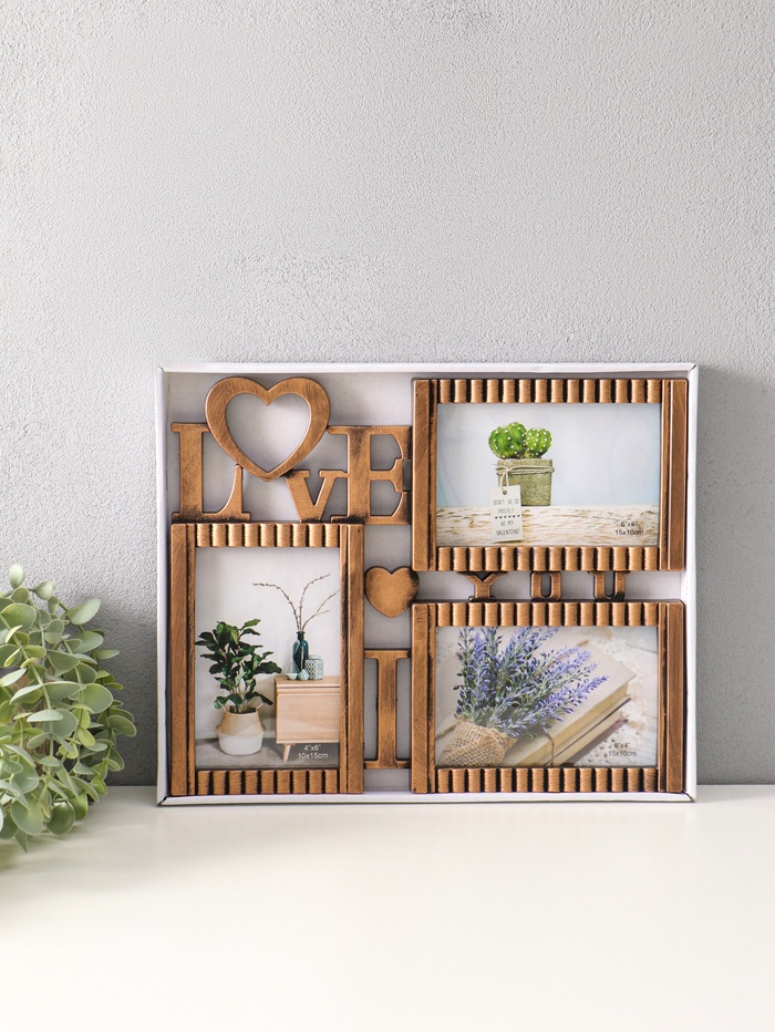 Фоторамка - коллаж на 3 фото 10×15 см «Я люблю тебя», пластик под т. золото, 31.5×25.5 см