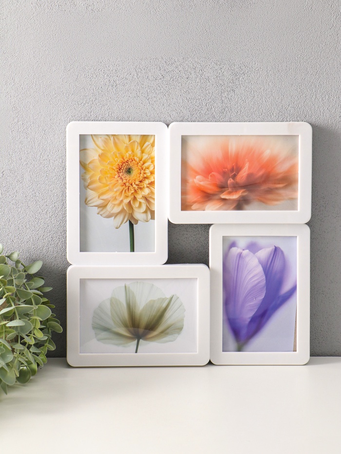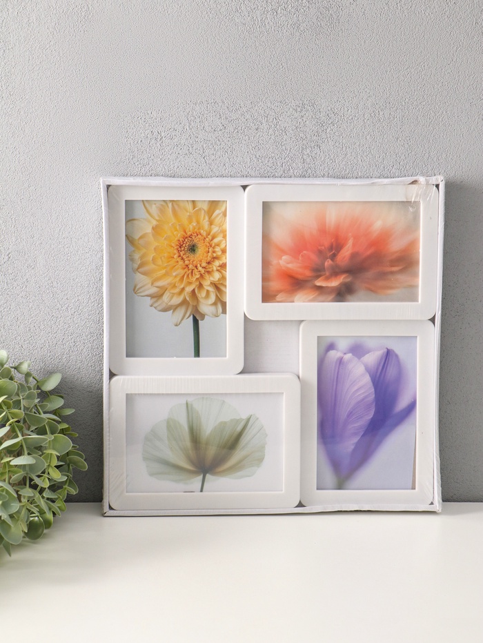 Фоторамка - коллаж на 4 фото 10×15 см «Плавные линии», белая, 29×29 см