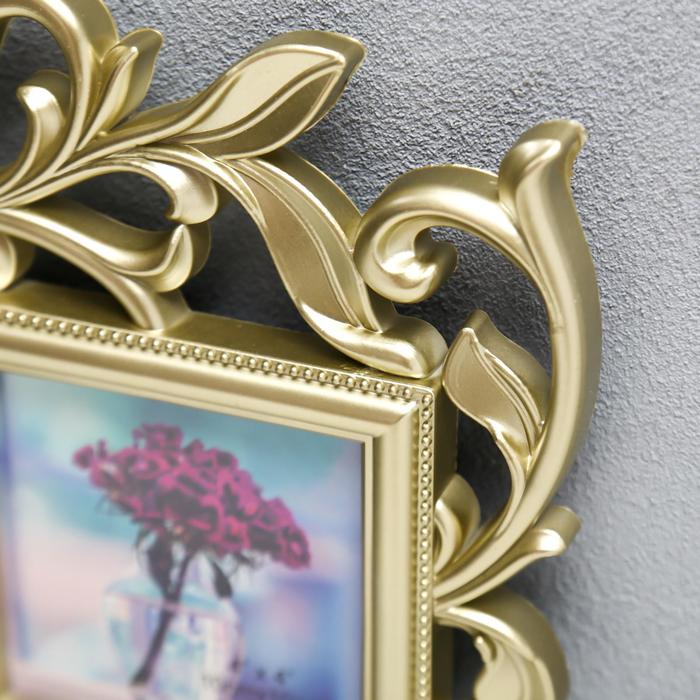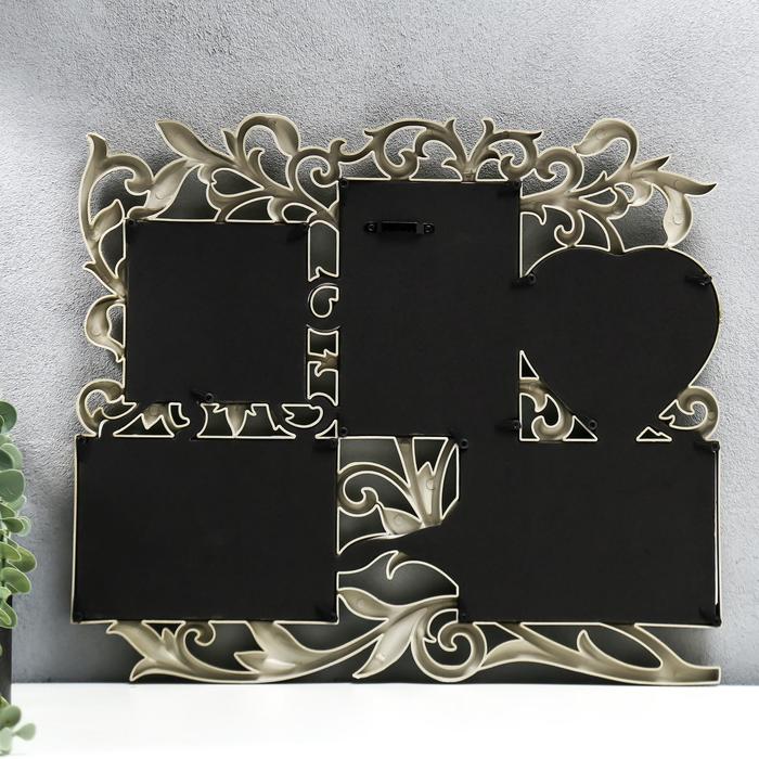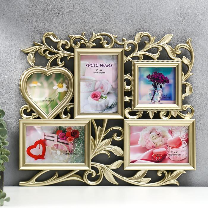 Фоторамка - коллаж на 5 фото 10×15 см, 10×10 см «Флористика», пластик, мультирамка, золотая, 40×36 см