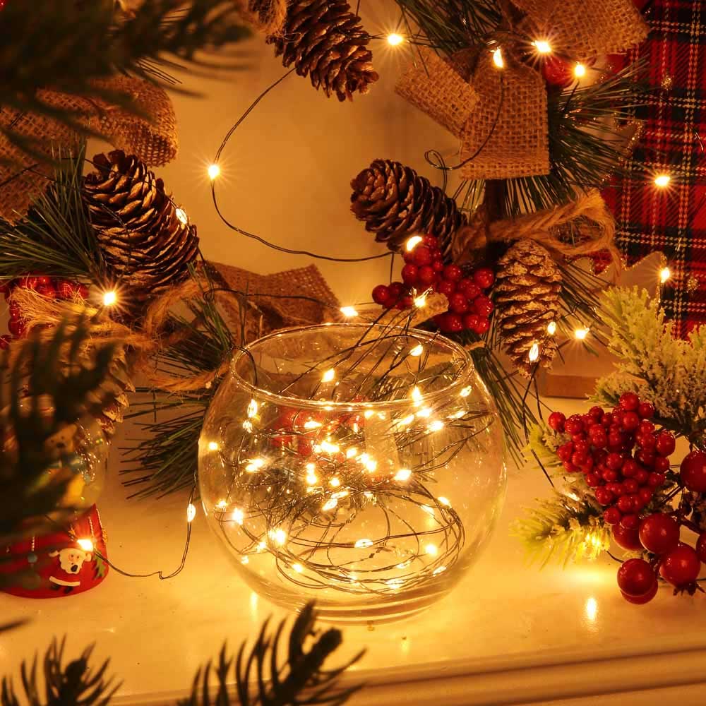 Гирлянда электрическая "Нить росы" 10м, 100 LED, 8 режимов, шампань, зеленый провод, 220В, СНОУ БУМ