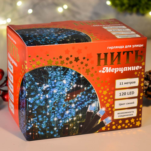 Гирлянда электрическая уличная "Мерцание" 11м, 120 ламп LED, черный провод, 1 режим, синий свет