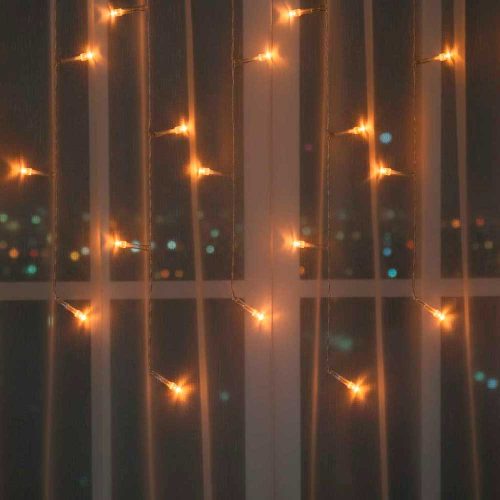 Гирлянда электрическая "Занавес" 1,5*1,5м, 150 LED, 10нитей, свечение шампань, прозрачный ПВХ, 220В,