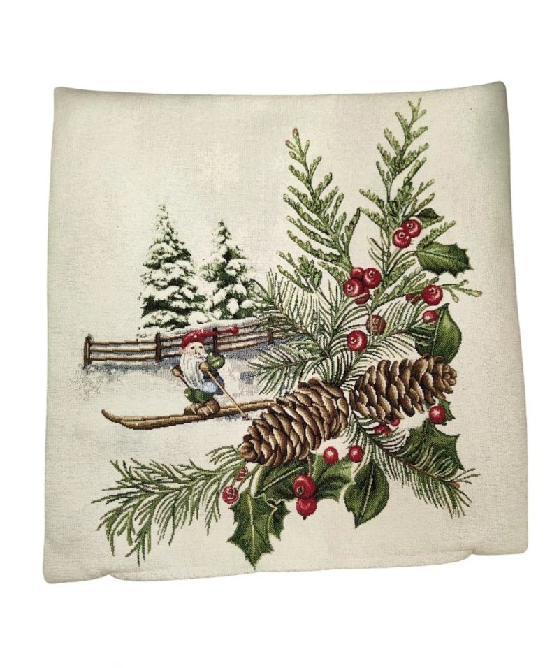 Гномы лыжники Шишки Наволочка 45х45 см Н/Р 2416904 шенилл серебро