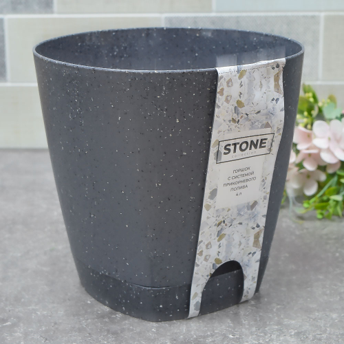 Горшок цветочный Amsterdam 4л D200мм с прикорневым поливом, светлый камень
