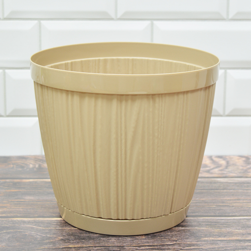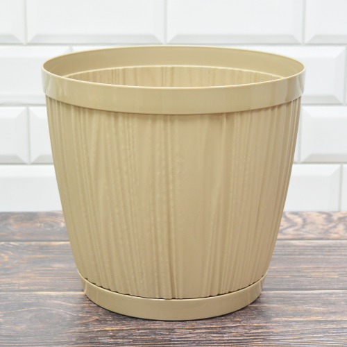 Горшок цветочный Barcelona 6,5л D240мм, молочный шоколадСтруящаяся поверхность кашпо напоминает теплые лучи солнца и гористый ландшафт города.На дне горшков расположена дренажная сетка, обеспечивающая отвод лишней воды и циркуляцию воздуха. Поддон надежно фиксируется к корпусу. Объем - 6,5 л.Заключаем договора по 44 ФЗ, 223 ФЗ