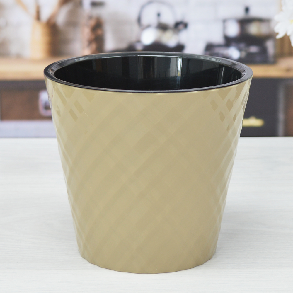 Горшок цветочный Manhattan 1,6 л (молочный шоколад)Горшок для цветов состоит из кашпо и дренажной вставки благодаря чему отсутствует необходимость в поддоне. Гладкие стенки внутренней вставки препятствуют врастанию корней к стенкам горшка, облегчая пересадку. Воздух, циркулирующий между внутренней вставкой и кашпо обеспечивает терморегуляцию корней, не давая им перегреваться на солнце. За глянцевой фактурой легко ухаживать, достаточно протереть влажной тканью.Объем - 1,6 л.Заключаем договора по 44 ФЗ, 223 ФЗ