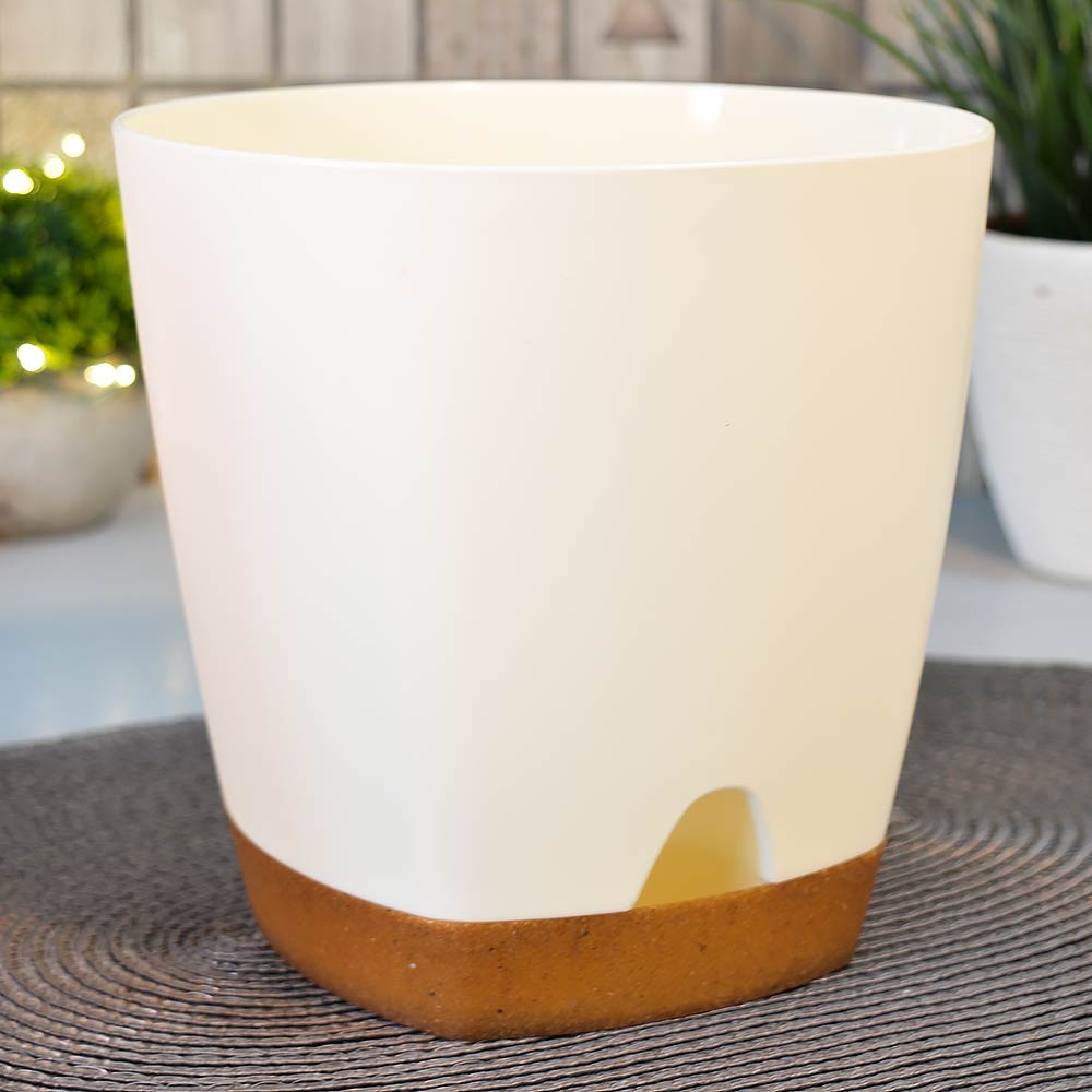 Горшок цветочный WOOD 2,5л D170мм с прикорневым поливом, сливочный/бук