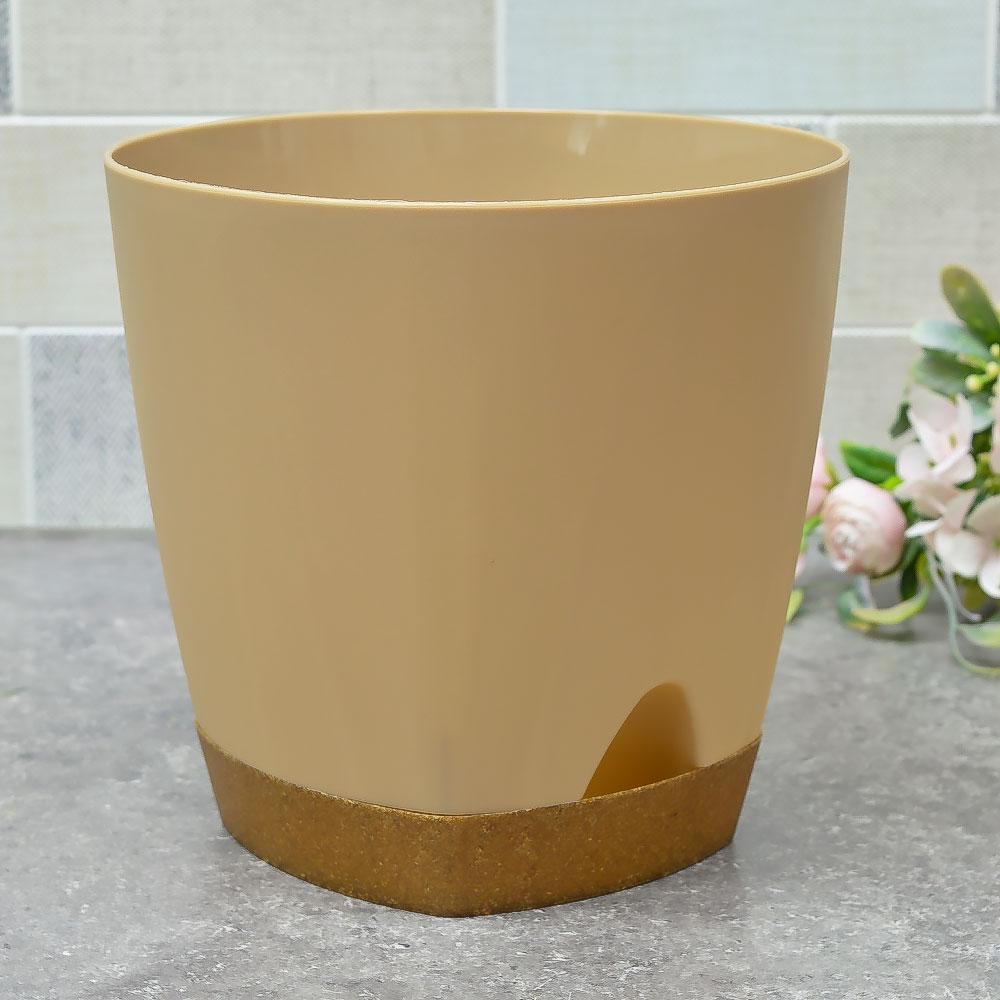 Горшок цветочный Wood 4л D200мм с прикорневым поливом, молочный шоколад/бук