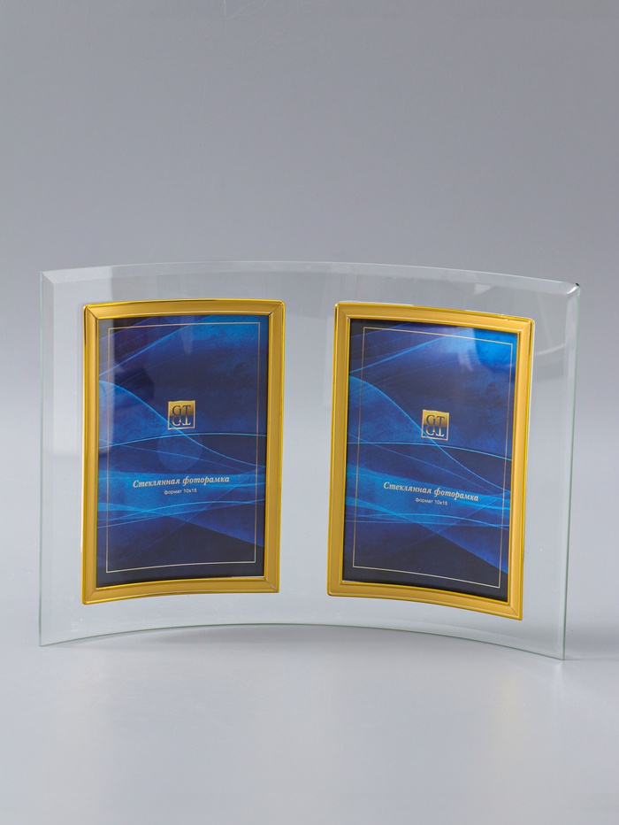 УЦЕНКА Стеклянная фоторамка - коллаж на 2 фото 10×15 см «Вертикаль», под золото