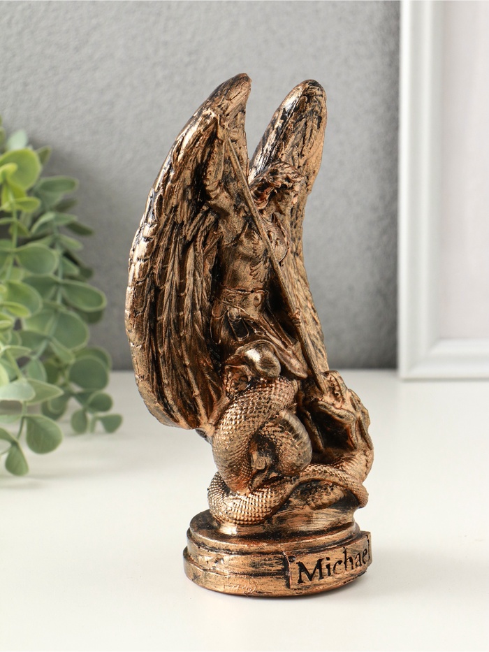 Эта скульптура несёт в дом атмосферу мира и спокойствия. Образ небесного архистратига, покровителя воинов и защитника душ, традиционно считается сильным оберегом. Фигура напоминает о торжестве добра и воле к порядку, становясь объектом для тихого созерцания и молитвы. Её лаконичная эстетика впишется как в классический интерьер, так и в современное жилое пространство, добавляя ему смысловую глубину.