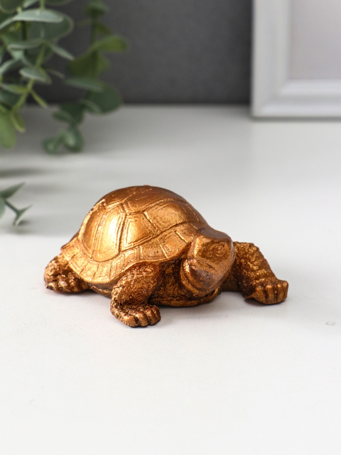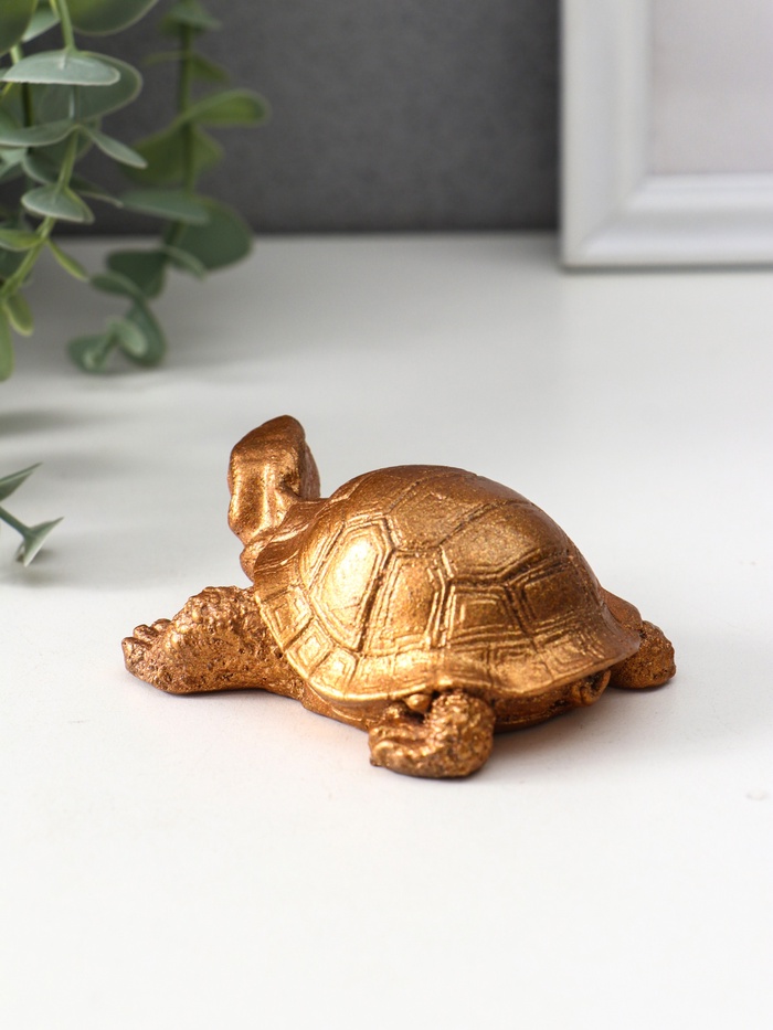 Черепаха из гипса с бронзовым лаковым покрытием выглядит как настоящее произведение искусства. Универсальная тематика позволяет ей органично вписаться как в классический, так и в современный интерьер. Она станет прекрасным подарком для тех, кто ценит не только эстетику, но и глубокую символику — ведь черепаха во многих культурах олицетворяет стабильность, мудрость и движение вперед, несмотря на кажущуюся медлительность.