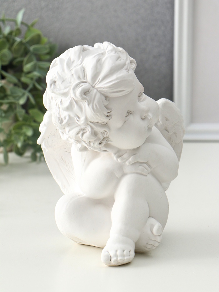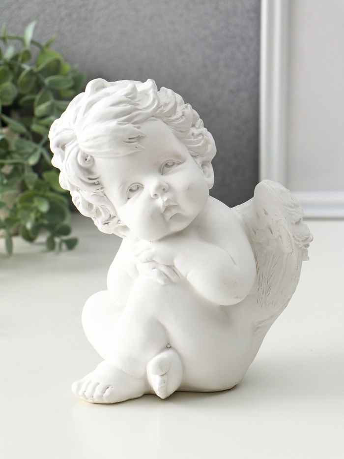 Фигура гипс «Ангелочек сидит думает», 18×14×13 см