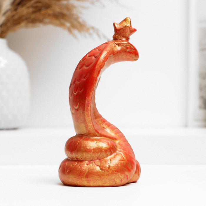 Фигура гипс «Змея с короной», красный с позолотой, 8×16.5 см