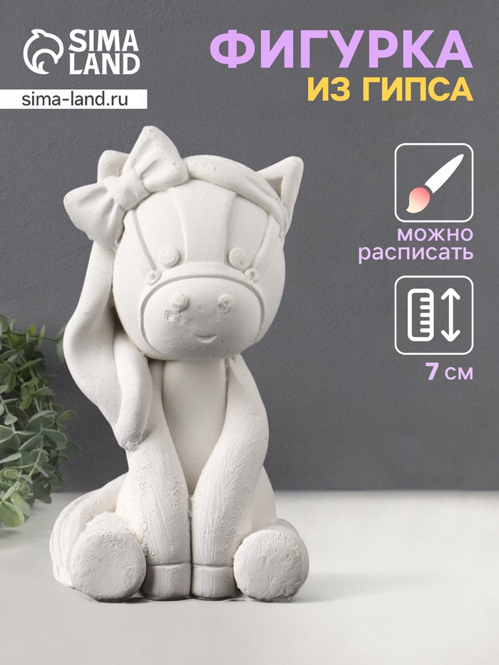 Фигурка для росписи «Пони с бантом», гипс, 7×3×3 см