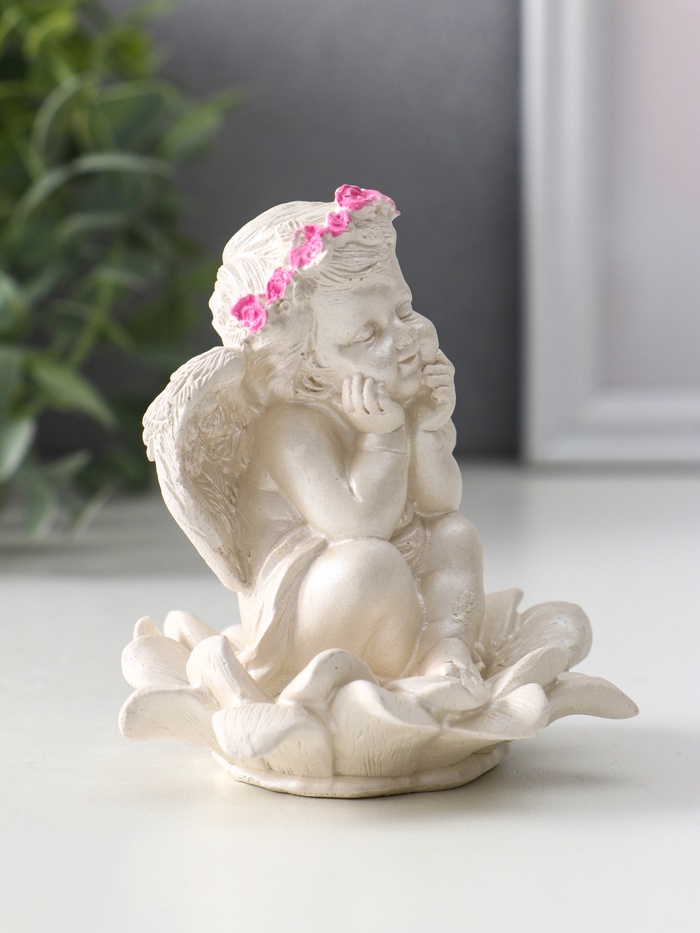 Фигурка гипс «Ангел на цветке», 8.5×7.5×7 см, перламутр