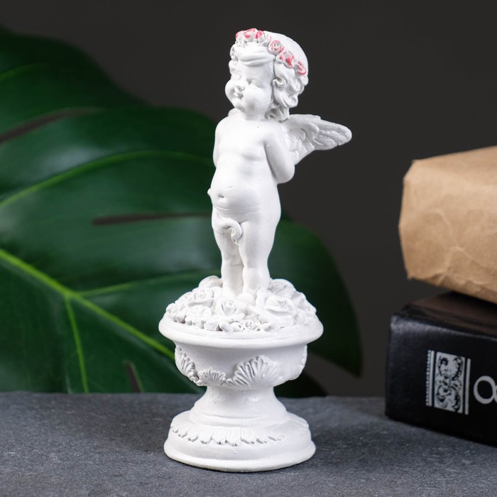 Фигурка гипс «Ангел на пьедестале», перламутр, 12×4.5×4.5 см