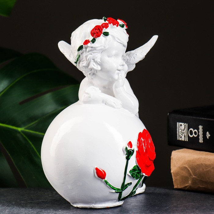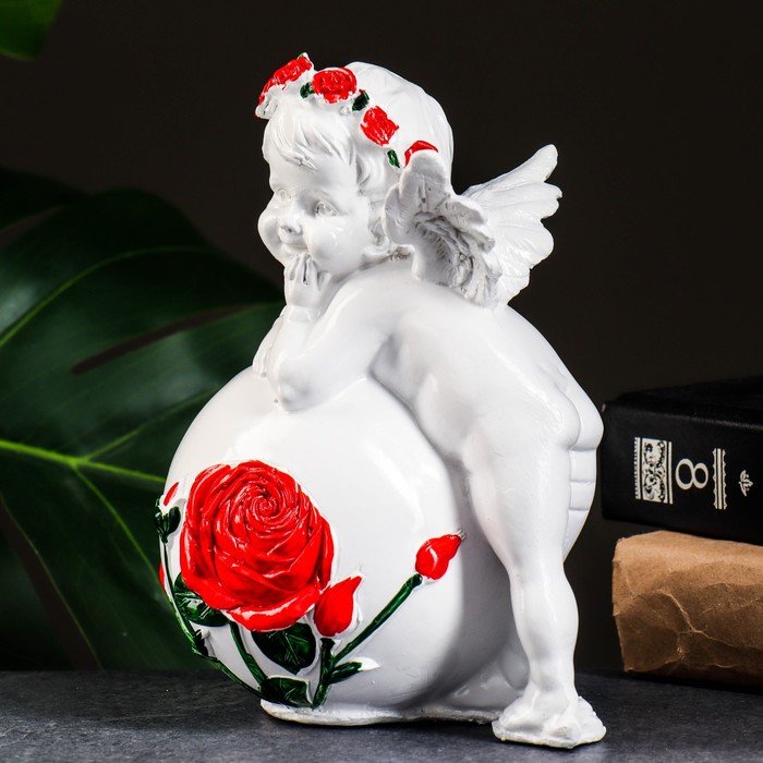 Фигурка гипс «Ангел на шаре с розой», 18×14 см
